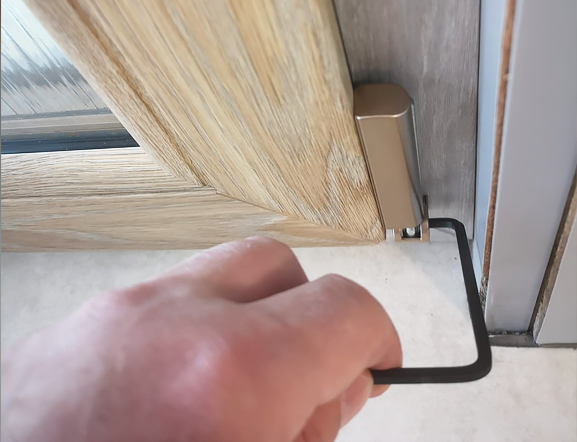 Aby wyregulować docisk skrzydła do ramy, należy odnaleźć tzw. grzybki ryglujące na krawędzi okna. Ich pozycję zmienia się przy pomocy klucza imbusowego / kombinerek / klucza Torx – obrót w jedną stronę zwiększa docisk (na zimę), a w drugą zmniejsza (na lato).